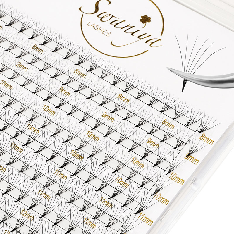 Swaniya, önbəkətli lash pərəstişkarları tətbiq prosesini tez və asanlaşdıraraq istifadə etməyə hazırlaşırlar. Hər bir tepsisən bir çox tətbiq üçün kifayət qədər kirpiklərin olmasını təmin edərək, 10 əvvəlcədən fanatlı kirpikdən ibarət 12 sıra var. Kirpiklər yüngül və rahat hiss edən yüksək keyfiyyətli PBT lifi ilə hazırlanmışdır.